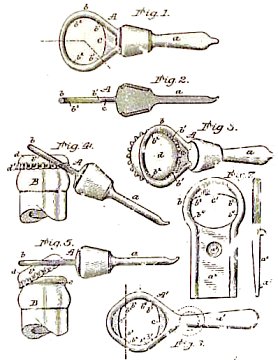 Eu retirei a patente de Painter e observei que Bernardin pediu a sua patente em 14 de março de 1893, quase dois meses antes do pedido de Painter em 5 de junho. A principal diferença da ferramenta de Bernardin era, como escreveu "preso a um balcão ou outro suporte estacionário, para adaptar a garrafa e servir de alavanca na remoção da tampa" e a ferramenta de Painter era um aparelho manual.