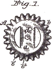 Embora a patente da esquerda tenha um número mais baixo, o pedido foi concedido quase um ano após o da direita (19 de maio de 1891 vs. 18 de junho de 1890). O pedido da patente anterior inclui um desenho da tampa presa